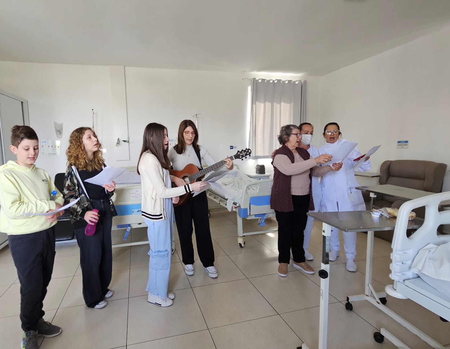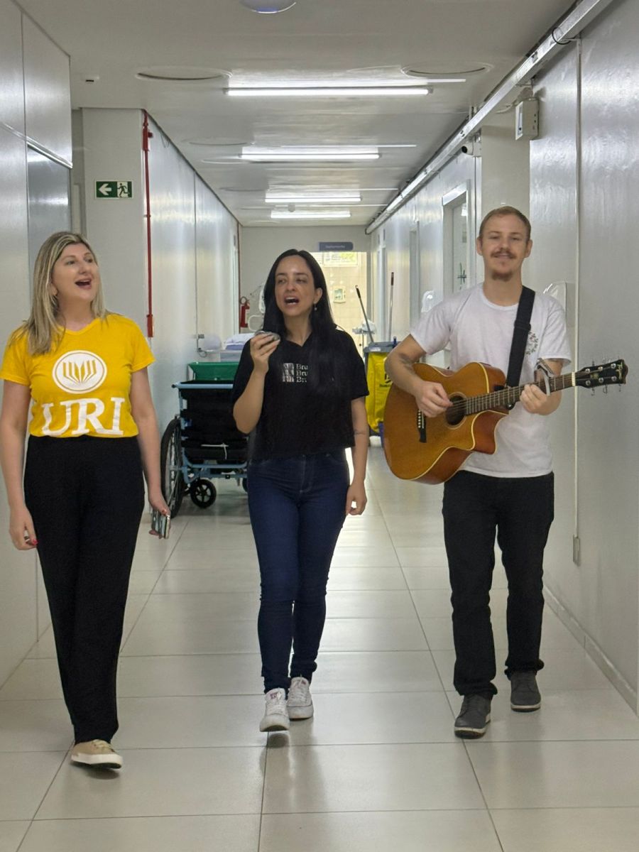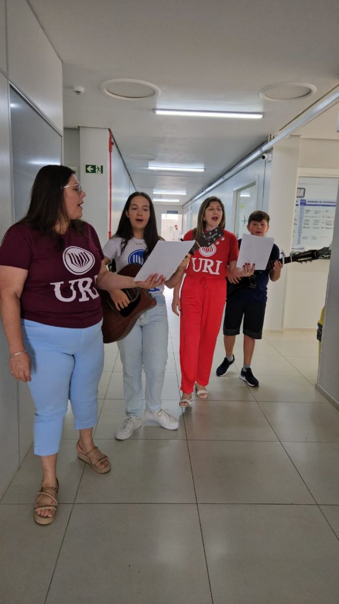 A iniciativa integra o Estágio de Pós-Doutoramento de Juliane Claudia Piovesan, desenvolvido no âmbito da Cátedra UNESCO UniTwin – A Cidade que Educa e Transforma, junto ao Programa de Pós-Graduação em Educação da URI, sob supervisão da professora doutora Lucí dos Santos Bernardi. O referido teve como objetivo construir, em parceria com a comunidade local, uma prática intergeracional centrada no ato de cantar, envolvendo pessoas internadas desde a infância até o envelhe_ser. Cada apresentação levou leveza, sensibilidade e esperança aos corredores do hospital, reafirmando a música como instrumento educativo, afetivo e transformador.