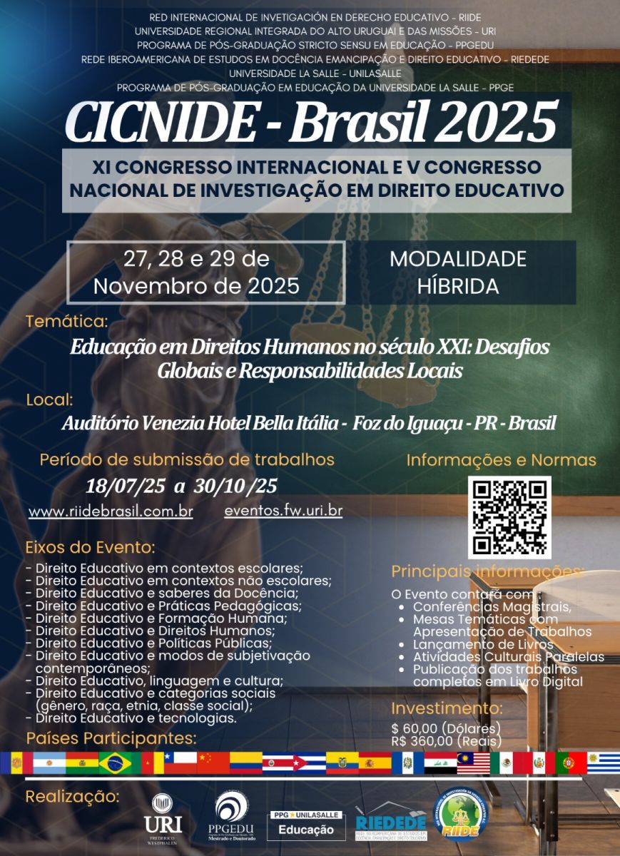 O Programa de Pós-Graduação em Educação (PPGEDU) da Universidade Regional Integrada (URI) está organizando, em Foz do Iguaçu, mais uma edição do Congresso Internacional de Direito Educativo (CICNIDE), um dos mais importantes espaços de debate na área da Educação e suas interfaces com as políticas públicas, legislação e inovação científica no campo jurídico-educacional.